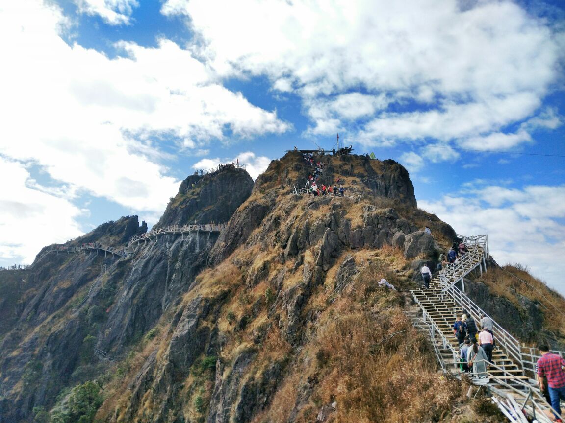 12:30-16:30午餐后乘车前往【玻璃天梯金子山】金子山玻璃天桥:到天梯已经有点脚软然而金子山的玻璃天桥还是建在海拔1417米的最高峰上是目前全广东海拔最高的玻璃天桥它将金子山两大主峰。天南峰、通天北峰连为一体一眼望下去深不可测脚下是悬崖绝壁、怪石嶙峋当然,金子山有国内首个玻璃天梯子山素以天梯天天梯是用石头建的然而最高峰的天梯则用玻璃建成的!玻璃天梯总长100多米,游客从海拔1300多米的高度开爬沿玻璃天梯上到1417米的峰顶